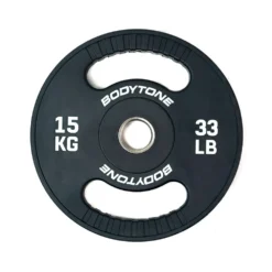 Black.The BODYTONE Urethane Olympic Plate 15kg Black is the perfect addition to any bodybuilding equipment collection. This high-quality weight plate is designed to fit any standard Olympic bar, making it a versatile and convenient option for weight lifting enthusiasts.Crafted from premium-grade urethane, each plate boasts exceptional durability and toughness. Molded with precision, the plate features a sleek, embossed design that ensures maximum grip while lifting. The durable construction of this weight plate ensures that it will withstand intense workouts and last for years to come.The smoothly finished edges of the BODYTONE Urethane Olympic Plate minimize damage to both the plate and the lifting bar, which makes it a safe option for those who training hard. Its scratch-proof coating guarantees long-lasting protection against wear and tear.Built to meet the needs of any athlete or fitness enthusiast, this BODYTONE Urethane Olympic Plate 15kg Black is a must-have for anyone looking to improve their strength and increase their lifting capacity. Whether you’re an experienced lifters or just starting out, this plate will help you reach your fitness goals!