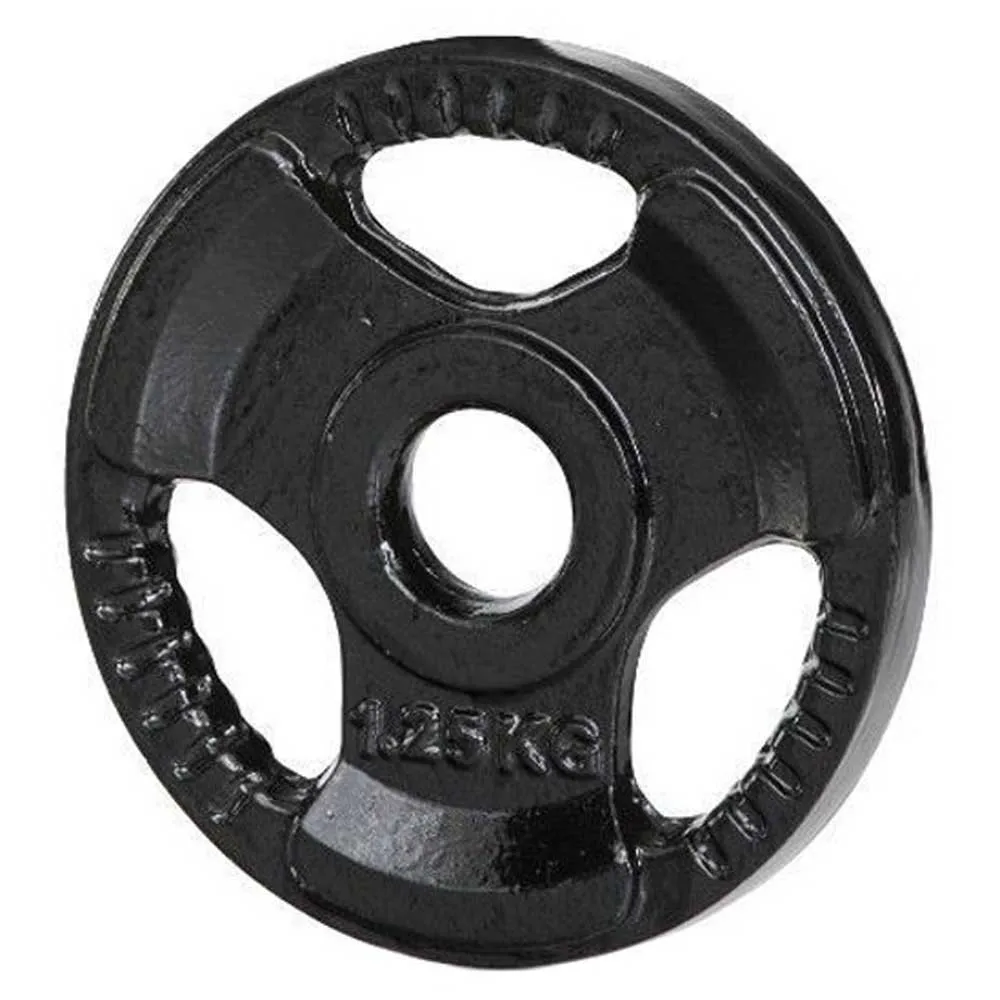 Cast iron plates with 3 grip option for ease of lifting onto the bar.