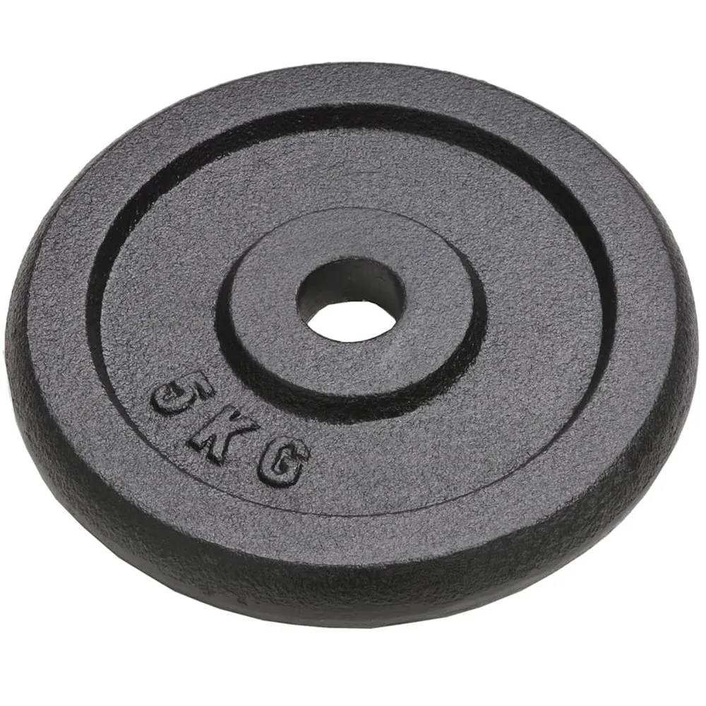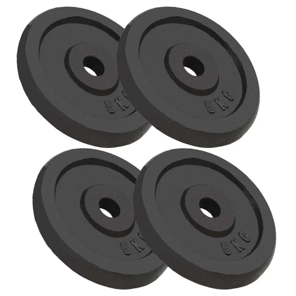 This set consists of 4 weight plates that weigh 5 kg each. It will be perfect for strengthening and shaping your muscles when used with a barbell bar, dumbbell bar or curl bar with a diameter of 30 mm. It is ideal for use at home or in a gym. These weight plates are made of high-quality cast iron with a lacquer finish. The weight is clearly stamped on each plate for quick and easy identification. Colour: Black Material: Cast iron with a lacquer finish Plate diameter: 21 cm Plate thickness: 2,9 cm Hole diameter: 30 mm Weight: 4 x 5 kg Delivery includes 4 weight plates